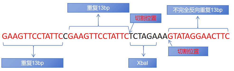 FRT: FRT(Flp Recombination Target)是Flp的識別位點,全長48bp,由3個13bp的反向回文序列和8bp的間隔序列共同組成。與間隔序列相鄰的兩個反向回文序列是Flp重組酶的識別和結合區域,間隔序列是重組發生的區域,也決定了整個序列的方向。