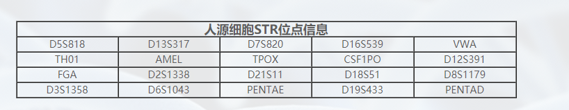 STR基因位點由長度為3~7個堿基對的短串連重復序列組成,這些重復序列廣泛存在于人類基因組中,可作為高度多態性標記,被稱為細胞的DNA指紋,其可通過PCR(聚合酶鏈式反應)來檢測。STR基因座位上的等位基因可通過擴增區域內重復序列的拷貝數的不同來區分,在毛細管電泳分離之后可通過熒光檢測來識別。隨后通過一定的計算方法,即可根據所得的STR分型結果與專業的細胞STR數據庫比對從而推算出樣品所屬的細胞系或可能的交叉污染的細胞系名稱。