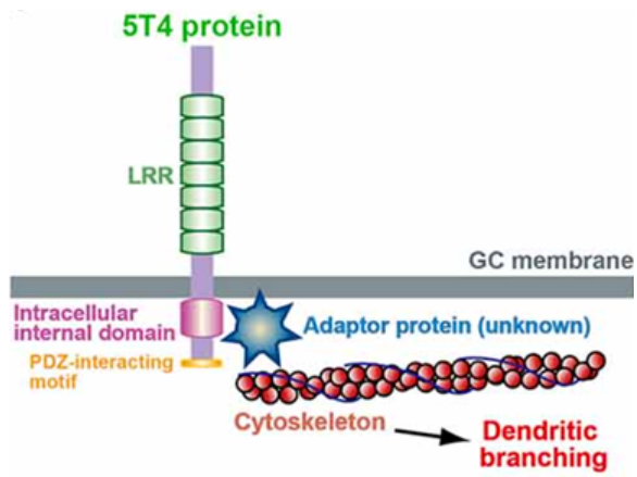 人類和小鼠的5T4蛋白的同源性可達(dá)81%。大量的證據(jù)顯示5T4與不同的生理、病理過程密切相關(guān),如細(xì)胞間連接、細(xì)胞形態(tài)及運(yùn)動(dòng)、細(xì)胞黏附能力、細(xì)胞膜的完整性等等。5T4廣泛表達(dá)于胚胎發(fā)育期的各種滋養(yǎng)層細(xì)胞,但在正常成人組織中表達(dá)極少,只在幾種上皮細(xì)胞中表達(dá),但卻在很多癌癥細(xì)胞中有表達(dá),包括結(jié)腸癌、胃癌、卵巢癌、口腔癌、前列腺癌、肺癌、腎癌、子宮癌等。這一特點(diǎn)使其成為了一種有吸引力的腫瘤免疫治療新靶點(diǎn)。