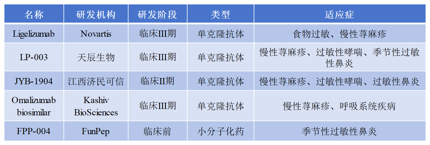 2025年3月2日,中國創(chuàng)新型生物制藥企業(yè)天辰生物醫(yī)藥(蘇州)有限公司公布了其自主研發(fā)的新一代抗IgE抗體LP-003治療慢性蕁麻疹的II期臨床中期數(shù)據(jù)。結(jié)果顯示,LP-003在關(guān)鍵療效指標上優(yōu)于現(xiàn)有抗IgE療法奧馬珠單抗,且展現(xiàn)出長效優(yōu)勢,或?qū)⒊蔀槿蚩笽gE治療領(lǐng)域的顛覆性藥物。據(jù)報道,Ligelizumab是諾華通過親和力改造的靶向Ig E的全人源IgG1k單抗,與奧馬珠單抗同為第一代IgE抗體,對IgE/FcεRI信號傳導阻滯明顯增強。JYB1904是濟民可信自主研發(fā)的靶向IgE重組人源化單克隆抗體創(chuàng)新藥,研究結(jié)果顯示其親和力更高,人源化程度更高,具有更優(yōu)的穩(wěn)定性。