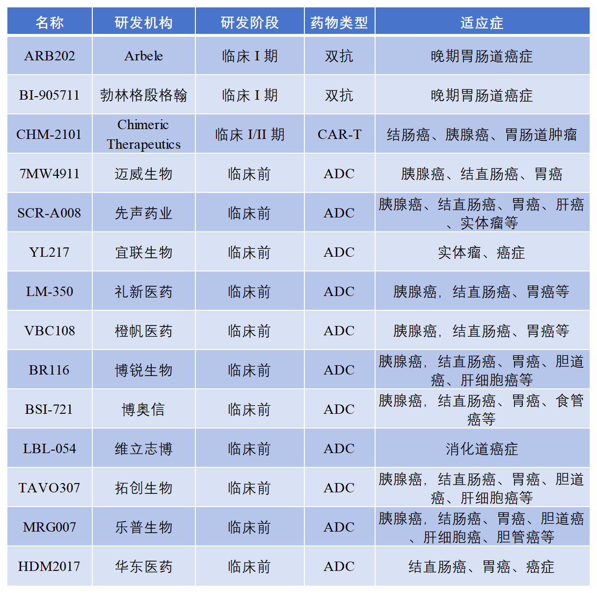 在最近的2025年美國癌癥研究協會(AACR)公布的研究摘要中,超200款來自中國的創新藥中,消化道腫瘤的CDH17靶點最為熱門,僅ADC領域相關研究就多達11項。作為實體瘤治療領域的新興靶點,CDH17正以雙抗、CAR-T、ADC等多賽道并行的姿態掀起研發浪潮。以下為針對CDH17靶點藥物在研進展的不完全統計: