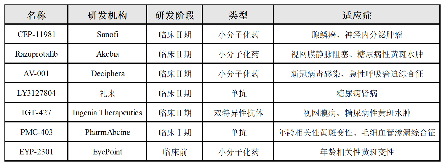 ANG/TIE2軸調控血管穩態與病理性血管生成。據報道,全球濕性AMD/DME患者超4000萬,Faricimab(ANG2+VEGF雙抗)上市首年銷售額破$10億,證明雙通路優勢;抗血管生成藥市場$450億(2023),但單靶點VEGF耐藥率>60%,ANG2抑制劑成破局關鍵。ANG/TIE2藥物正從單一抗血管生成轉向“血管-免疫微環境重塑”,下一代協同療法有望突破腫瘤與慢性血管疾病治療瓶頸。