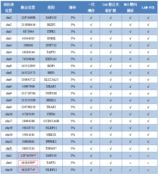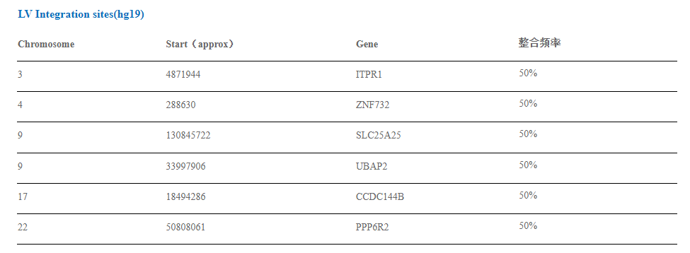 該產(chǎn)品選取公布的位點信息僅來自于31家實驗室大多數(shù)獲得的較為一致的結(jié)果,不排除有一些潛在的未被公布,對一些復雜的非典型的整合和插入方式(例如一端或部分LTR發(fā)生缺失的整合位點)可能存在漏報;