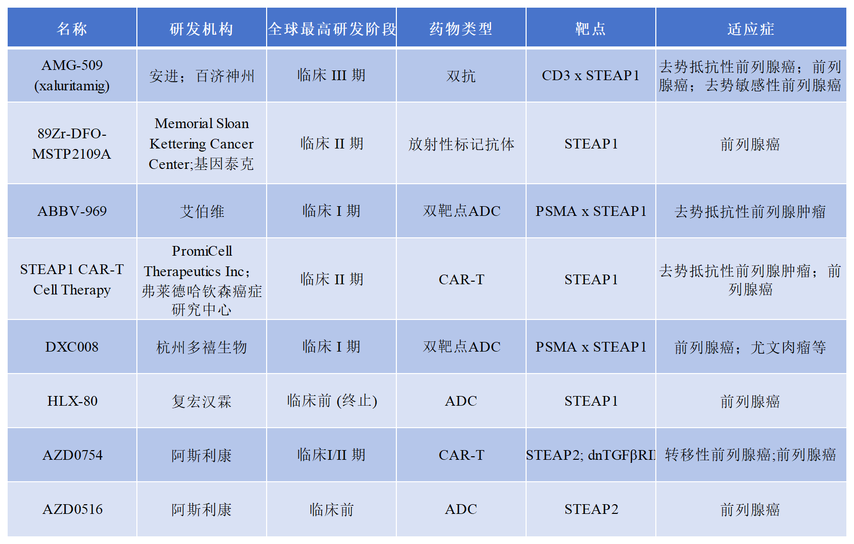 關于STEAP1/2在研的部分藥物進展如下表所示: