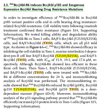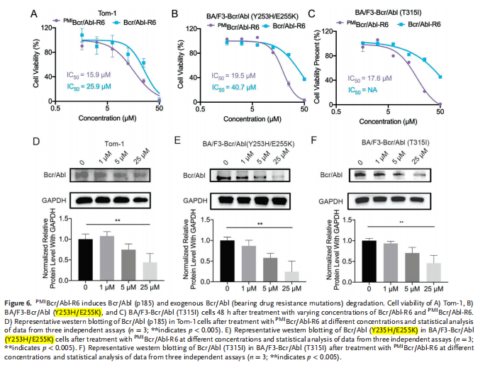 科佰生物為客戶提供了BCR-ABL1 [Y253H/E255K]/BaF3(貨號CBP73326)和BCR-ABL1 [T315I]/BaF3(貨號CBP73190)產(chǎn)品,幫助客戶在細(xì)胞活性測定中對其細(xì)胞活力測定,判斷PMIBcr/Abl-R6對細(xì)胞的殺傷能力和降解能力,通過對不同濃度的PMIBcr/Abl-R6處理的細(xì)胞系代表性蛋白印跡的測定與分析,從而助力研究過程中PMIBcr/Abl-R6誘導(dǎo)Bcr/Abl p185和外源性表達(dá)的Bcr/Abl攜帶耐藥性突變。