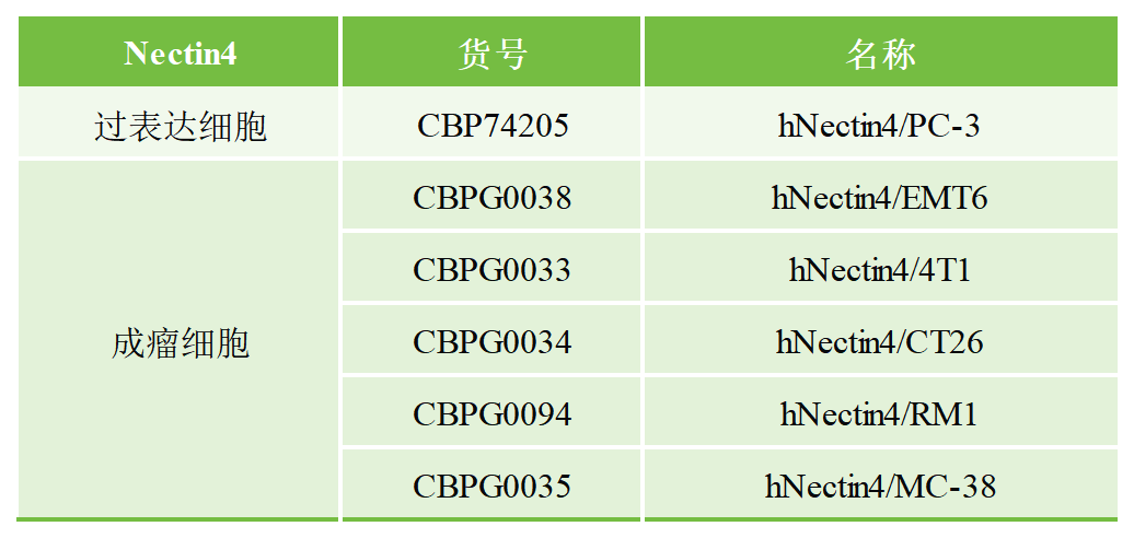 助力Nectin-4 ADC藥物的研發,科佰生物及時開發了Nectin-4細胞系產品: