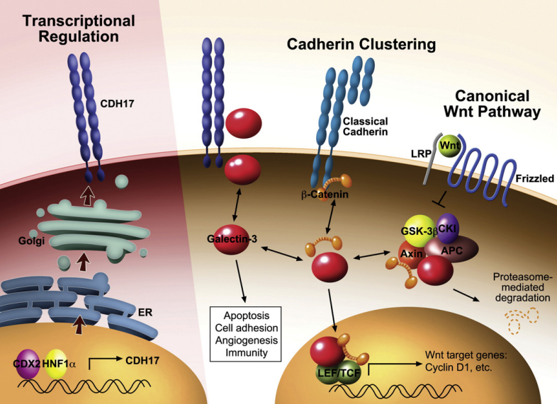 CDH17(Cadherin 17,LI-cadherin)序列由七個細胞外的鈣粘蛋白結構域和一個非常短的細胞質結構域形成。與其他經典的鈣粘蛋白不同,CDH17是一種鈣依賴性跨膜糖蛋白,可介導細胞在腸上皮中的細胞粘附。